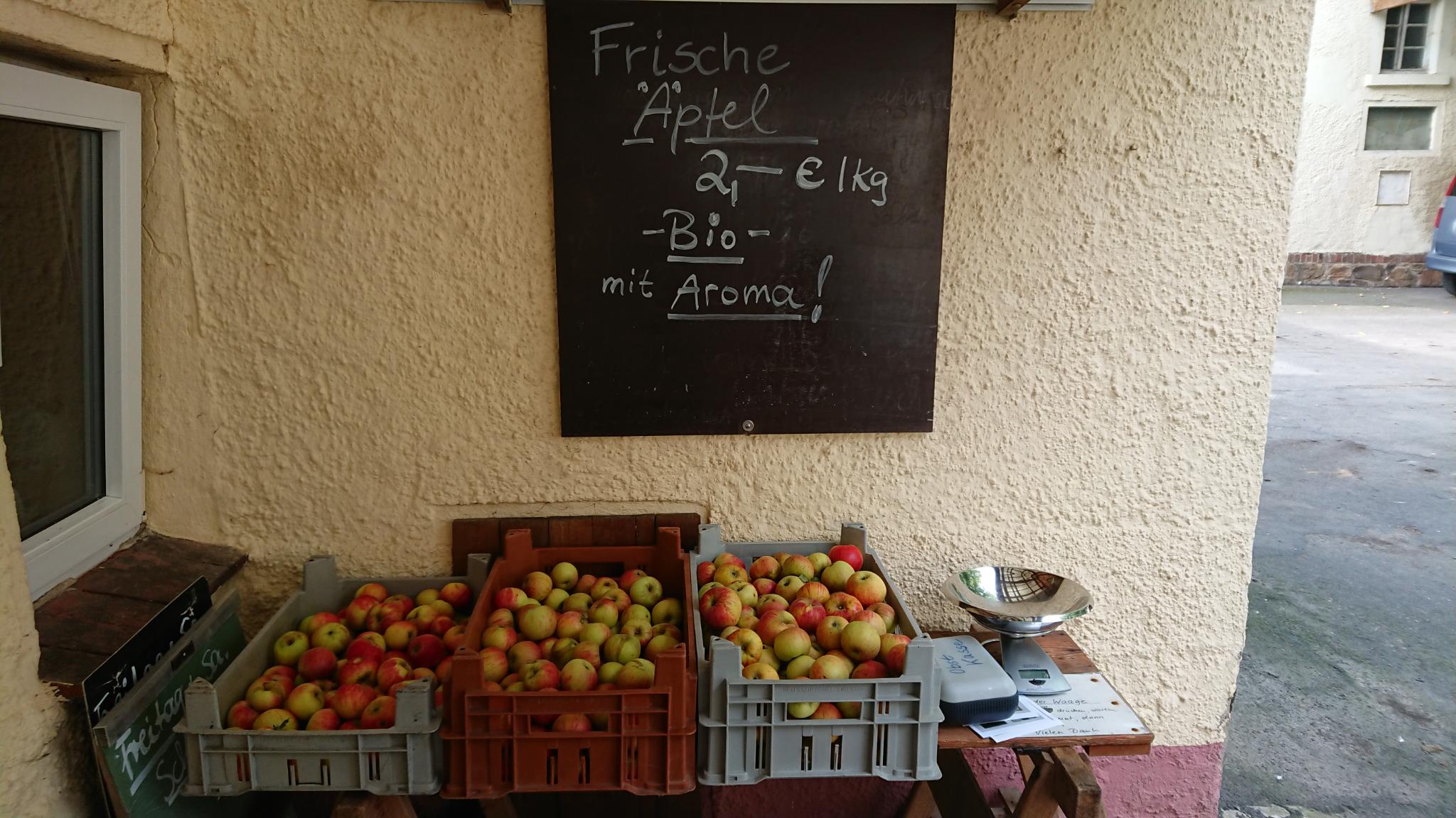 Ab sofort gibt es wieder frisch gepflückte Äpfel (alte Sorten) in Selbstbedienung. Die Äpfel sind unbehandelt und naturbelassen.